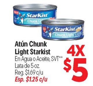 Atún Chunck Light Starkist En Agua o Aceite, SVT** Lara de 5 oz
