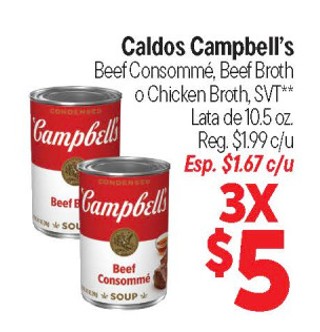 Caldos Campbell's Beef Consommé, Beef Broth o Chicken Broth, SVT** Late de 10.5 oz