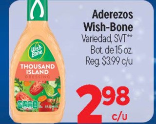 Aderezos Wish-Bone Variedad, SVT** Bot. de 15 oz
