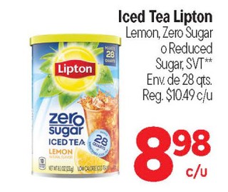 Iced Tea Lipton Lemon, Zero Sugar o Reduced Sugar, SVT** Env. de 28qts