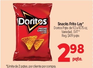Snacks frito lay doritos pqte. de 9.2 a 10.75 oz., Variedad, SVT*