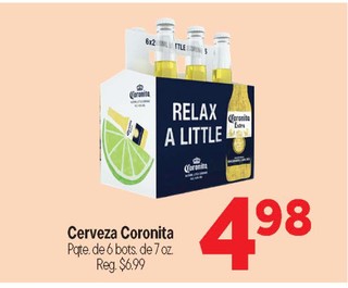 Cerveza coronita pqte. de 6 bots. de 7 oz.