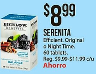 bigelow benefits balance $serenita efficient original night time. tablets. reg. $-$c/u ahorro