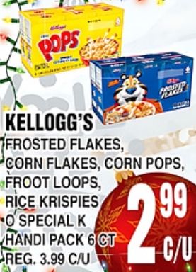 pops kellogg's frosted flakes corn flakes, pops, froot loops, rice krispies special handi pack