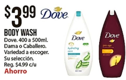 $dove body wash dove dama caballero. variedad escoger. selección. reg. $c/u ahorro