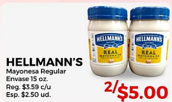 hellmann's mayonesa regular envase reg. $c/u esp. $ud. real ayonnaise atonnaise