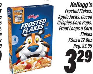 Kellogg's Frosted Flakes Apple Jacks, Cocoa Crispies, Corn Pops, From Loops o Corn Flakes 7.9 a 12.6 oz