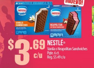 NESTLÉ® Vanila o Neapolitan Sandwiches Pqte. 6 ct.