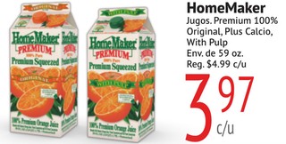 HomeMaker Jugos. Premium 100% Original, Plus Calcio, With Pulp Env. de 59 oz.