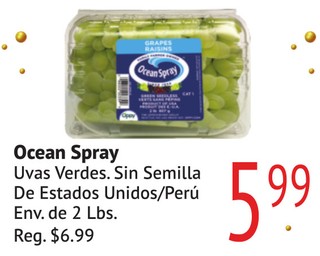 Ocean Spray Uvas Verdes. Sin Semilla De Estados Unidos/Peru Env. de 2 Lbs.