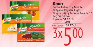 Knorr Sazón. Culantro y Achiote Oregano, Regular, Light Original, Ajo y Cebolla. Caja de 16