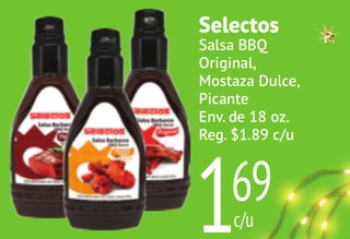 Selectos Salsa BBQ Original, Mostaza Dulce, Picante Env. de 18 oz.