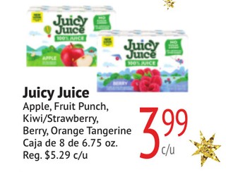 Juicy Juice Apple, Fruit Punch, Kiwi/Strawberry, Berry, Orange Tangerine Caja de 8 de 6.75 oz.