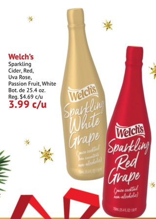 Welch's Sparkling Cider, Red Uva Rose, Passion Fruit, White Bot. de 25.4oz