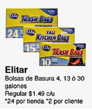 cila trash bags elitar tall kitchen baus bolsas basura alones regular $c/u *por tienda cliente