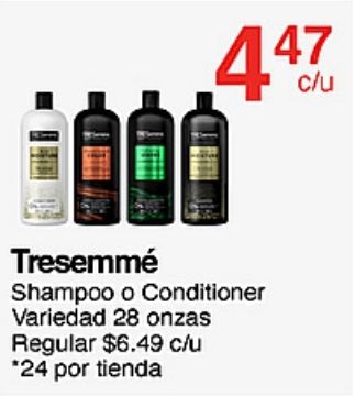 tresemmé shampoo conditioner variedad onzas regular $c/u *por tienda
