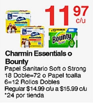essentials bounty charmin papel sanitario soft strong doble toalla rollos dobles regular *por tienda