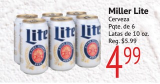 Miller lite cerveza pqte. de 6 latas de 10 oz.
