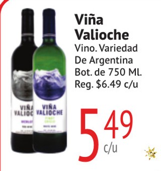 Viña valioche vino variedad de Argentina bot. de 750 ml.
