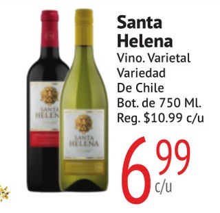 Santa Helena vino varietal variedad de Chile bot. de 750 ml.