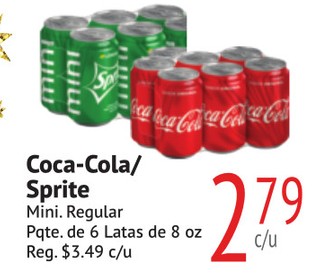 Coca-Cola/Sprite Mini. Regular Pqte. de 6 Latas de 8 oz