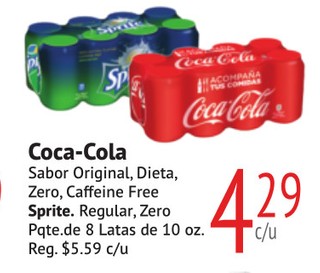 Coca-Cola Sabor Original, Dieta, Zero, Caffeine Free Sprite. Regular, Zero Pqte.de 8 Latas de 10 oz.