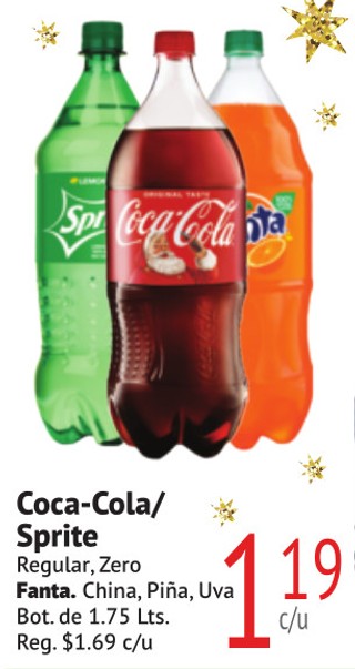 Coca-Cola o Sprite Regular, Zero Fanta China, Piña, Uva Bot. de 1.75 Lts.