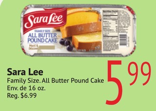 Sara Lee Family Size. All Butter Pound Cake Env. de de 16 oz.