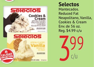 Selectos Mantecados Reduced Fat Meapolitano, Vanilla, Cookies & Cream Env. de 56 oz.