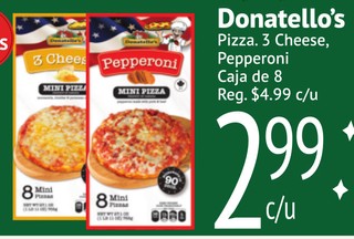 Donatello's Pizza 3 Cheese, pepperoni Caja de 8