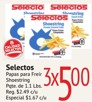 Selectos Papas para FreÃr Shoestring Pqte. de 1.1 Lbs.