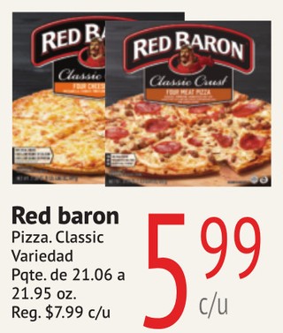 Red baron Pizza. Classic Variedad Pqte. de 21.06 a 21.95 oz.