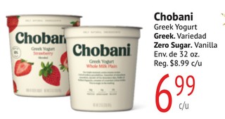 Chobani Greek Yogurt Geek. Variedad Zero Sugar. Vanilla Env. de 32 oz.