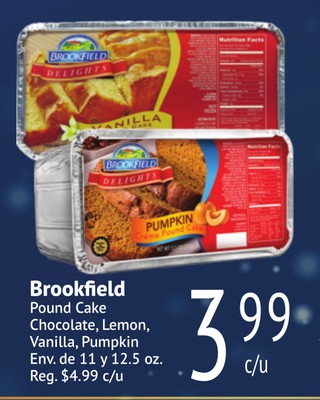 Brookfield Pound Cake Chocolate, Lemon, Vanilla, Pumpkin Env. de 11 y 12.5 oz.