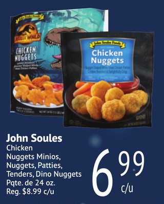 John Soules Chicken Nuggets Minios, Nuggets, Dino Nuggets Pqte. de 24 oz.
