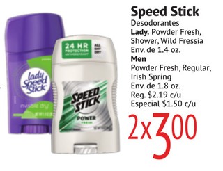 Speed Stick Desodorantes Lady. Powder Fresh, Shower, Wild Fressia Env. 1.4 Oz Men Powder Fresh, Regular Irish Spring Env. De 1.8 Oz