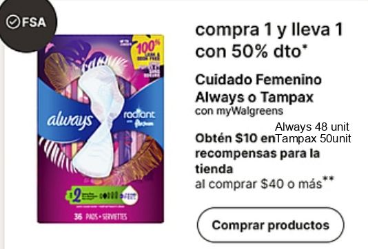 always pads-serviettes radiant compra dto* cuidado femenino tampax mywalgreens unit obtén $entampax recompensas tienda comprar productos