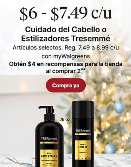 $c/u cuidado cabello estilizadores tresemmé artículos selectos reg. mywalgreens obtén recompensas tienda comprar compra bịch moisture extra hold