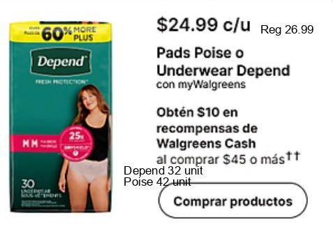 more plus depend $c/u pads poise underwear mywalgreens obtén recompensas walgreens cash comprar más++ unit productos
