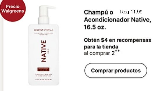 precio walgreens native champú acondicionador obtén recompensas tienda comprar productos