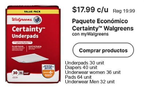 value pack walgreens certainty™ underpads $c/u paquete económico certainty mywalgreens comprar productos unit diapers underwear women pads
