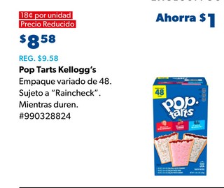 Pop Tarts Kellogg's Empaque variado de 48. Sujeto a "Raincheck". Mientras duren. #990328824