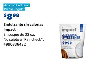 Endulzante sin calorÃas Impact Empaque de 32 oz. No sujeto a "Raincheck". #990336432