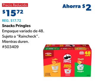 Snacks Pringles Empaque variado de 48. Sujeto a "Raincheck". Mientras duren. #503409