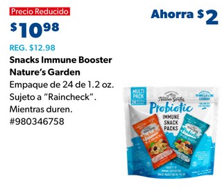 Snacks Immune Booster Nature's Garden Empaque de 24 de 1.2 oz. Sujeto a "Raincheck". Mientras duren. #980346758.
