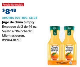 Jugo de china Simply Empaque de 2 de 46 oz. Sujeto a "Raincheck". Mientras duren. #990438713.
