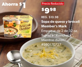 Sopa de queso y brócoli Member's Mark Empaque de 2 de 32 oz. Sujeto a "Raincheck". Mientras duren. #980170727