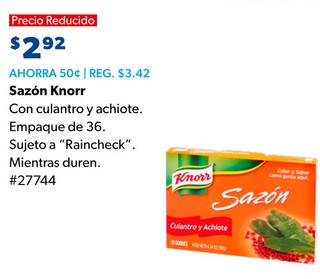 Sazon knorr con culantro y achiote. empaque de 36. sujeto a ´´raincheck´´. mientras duren. #27744