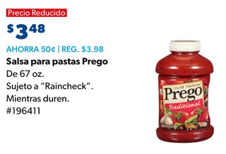 Salsa para pastas prego de 67 oz. sujeto a ´´raincheck´´. mientras duren. #196411