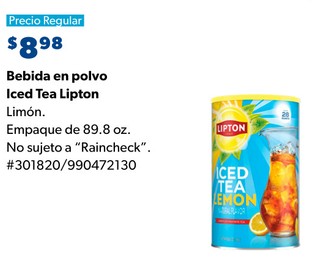 Bebida en polvo Iced Tea Lipton Limón. Empaque de 89.8 oz. No sujeto a "Raincheck". #301820/990472130